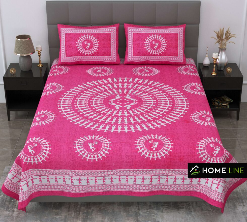 Enhance your bedroom décor with this Jaipuri Cotton Printed Double Bedsheet. Crafted from 100% pure cotton, it offers softness, breathability, and elegant traditional prints for a comfortable and stylish look. Comes with two matching pillow covers.