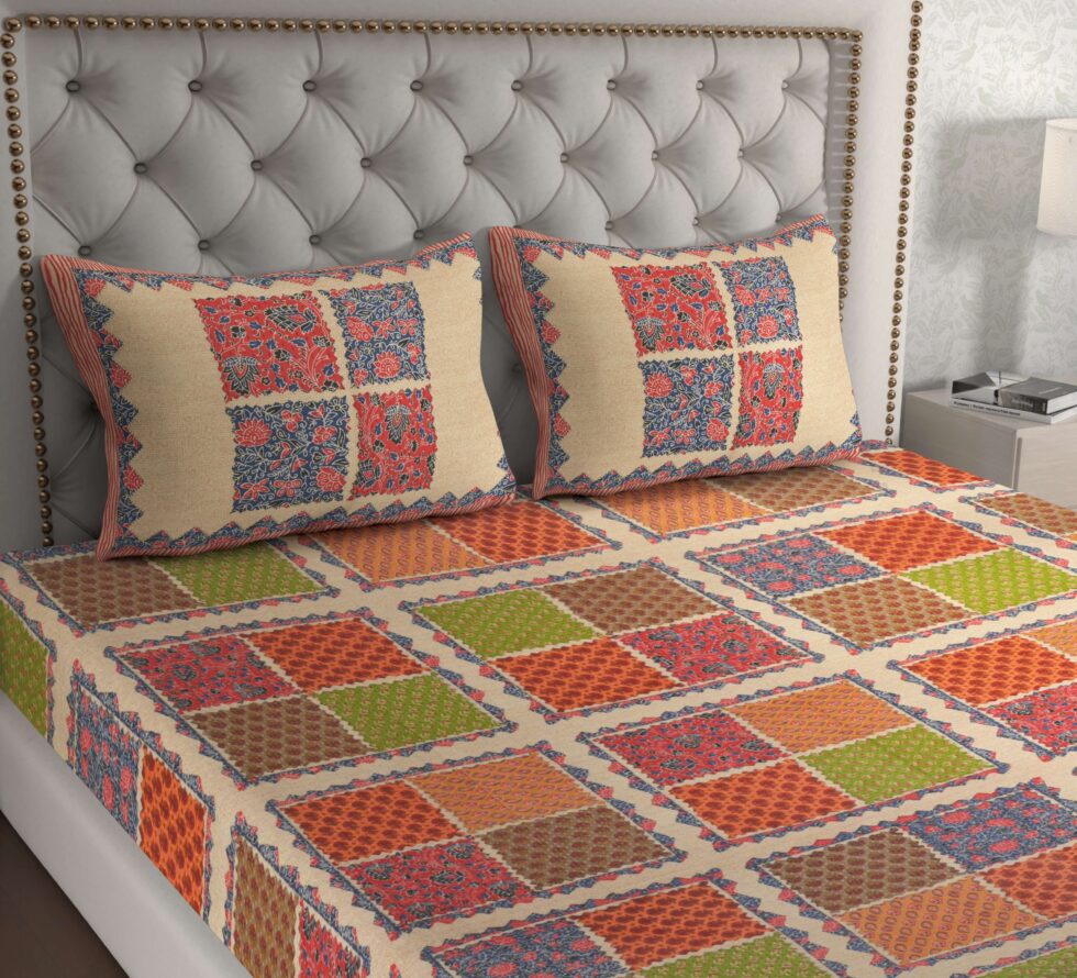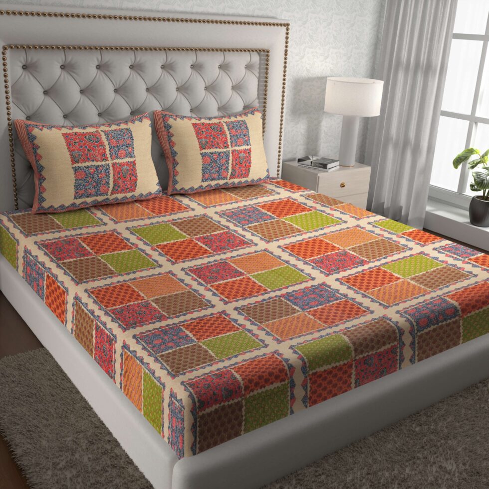Add a royal charm to your bedroom with this Rajasthani Traditionally Printed Cotton Double Bed Bedsheet. Crafted from soft and breathable pure cotton, it features vibrant ethnic prints inspired by Rajasthan’s rich artistry. Comes with 2 matching pillow covers, ensuring comfort, elegance, and long-lasting freshness in every wash.