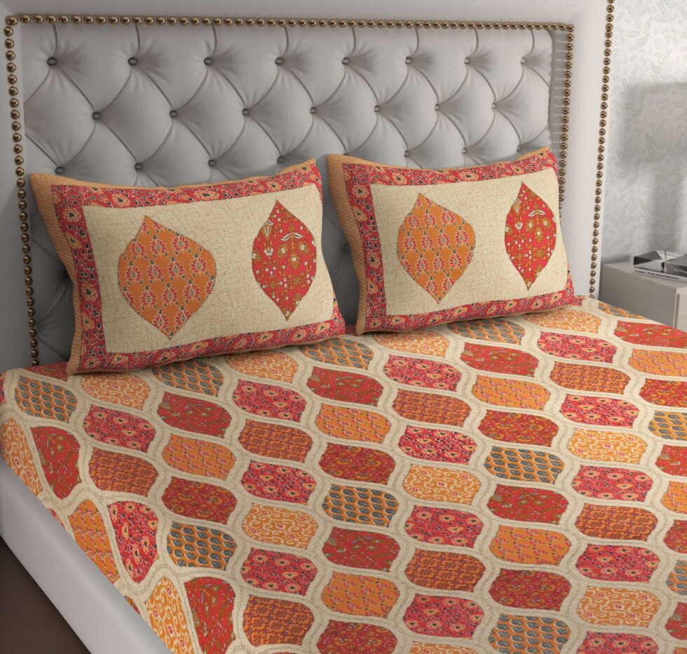 Rajasthani Traditionally Printed Cotton Doublebed Bedsheet With Pack of 2 Pillow Covers