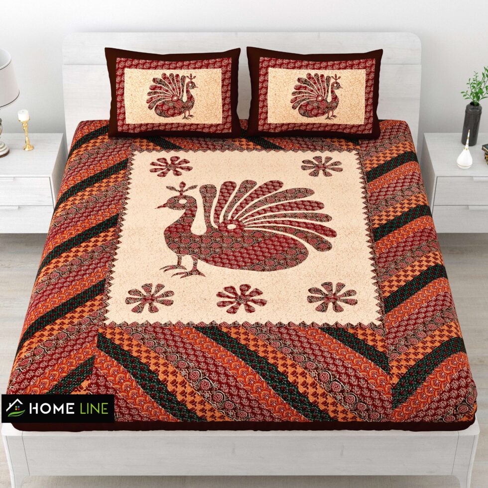 Rajasthani Traditionally Printed Cotton Doublebed Bedsheet With Pack of 2 Pillow Covers