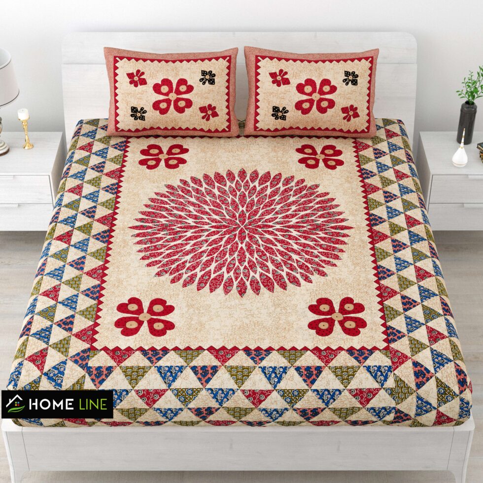 This bedsheet comes with a matching set of 2 pillow covers, completing the look and giving your bed a coordinated, elegant appearance. The soft and durable cotton fabric ensures long-lasting use, easy maintenance, and superior comfort for everyday use.