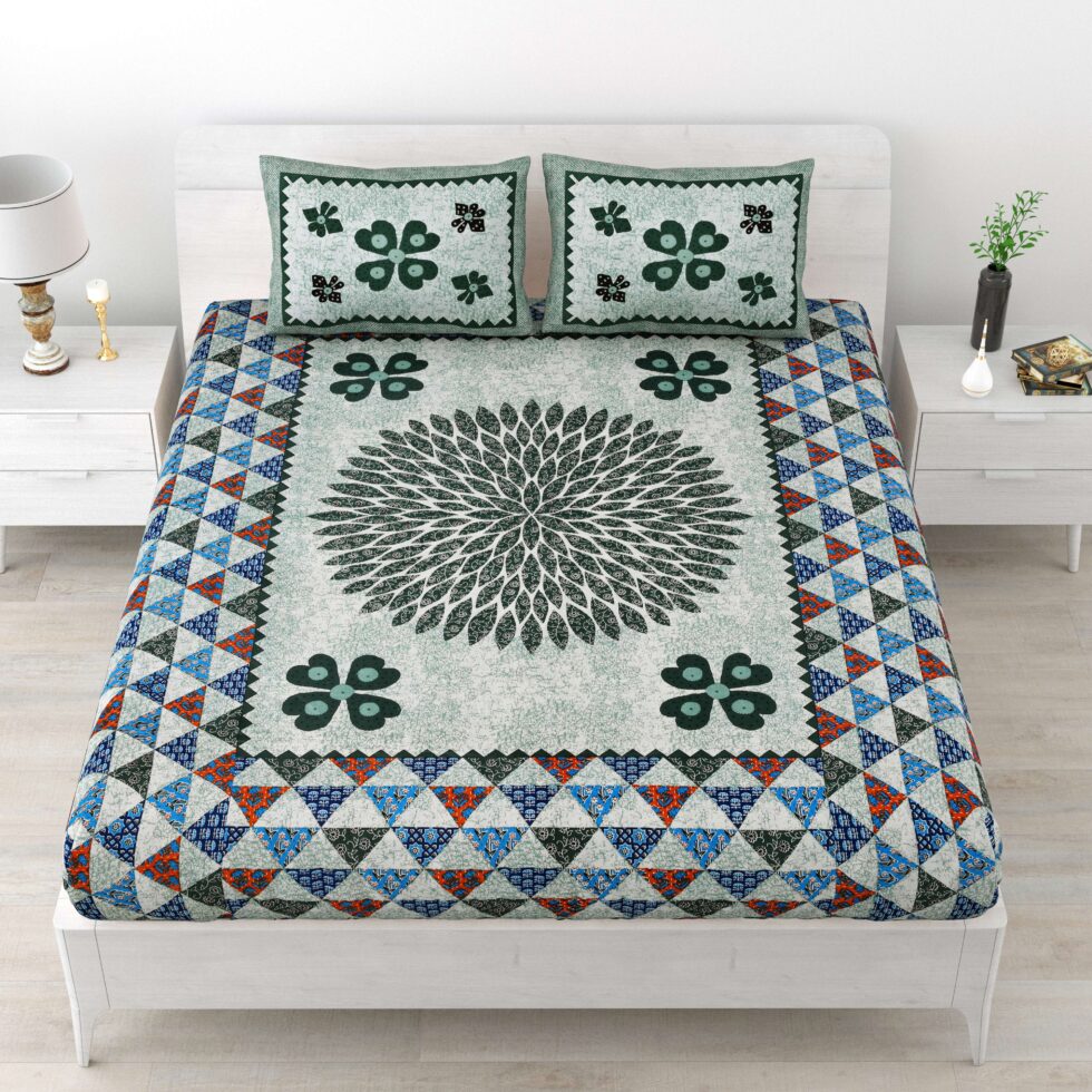 This bedsheet comes with a matching set of 2 pillow covers, completing the look and giving your bed a coordinated, elegant appearance. The soft and durable cotton fabric ensures long-lasting use, easy maintenance, and superior comfort for everyday use.