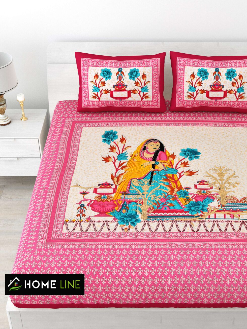 Add a royal charm to your bedroom with this Rajasthani Traditionally Printed Cotton Double Bed Bedsheet. Crafted from soft and breathable pure cotton, it features vibrant ethnic prints inspired by Rajasthan’s rich artistry. Comes with 2 matching pillow covers, ensuring comfort, elegance, and long-lasting freshness in every wash.