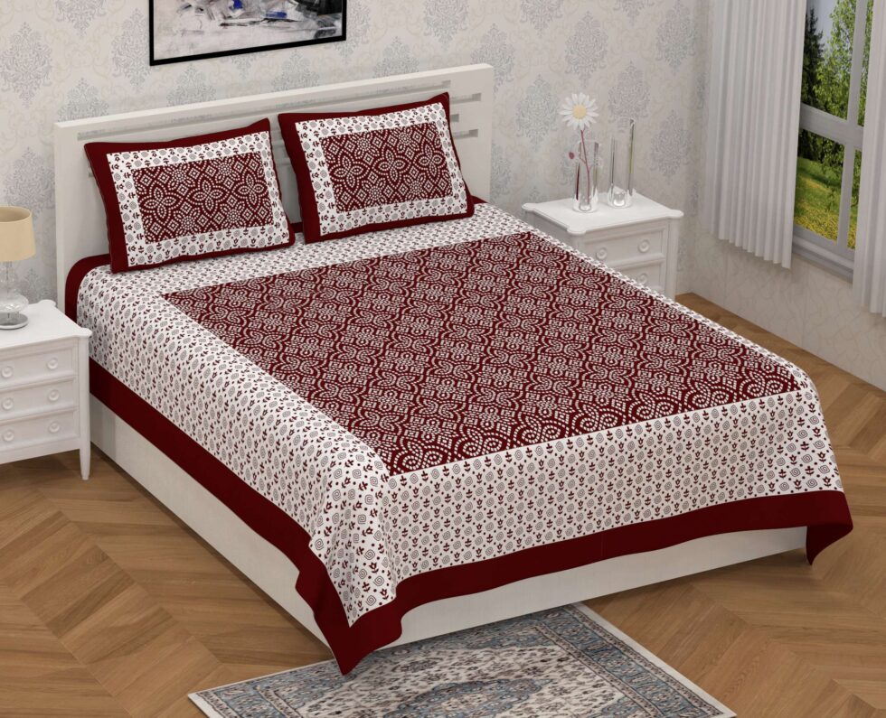 Rajasthani Traditionally Printed Cotton Doublebed Bedsheet With Pack of 2 Pillow Covers